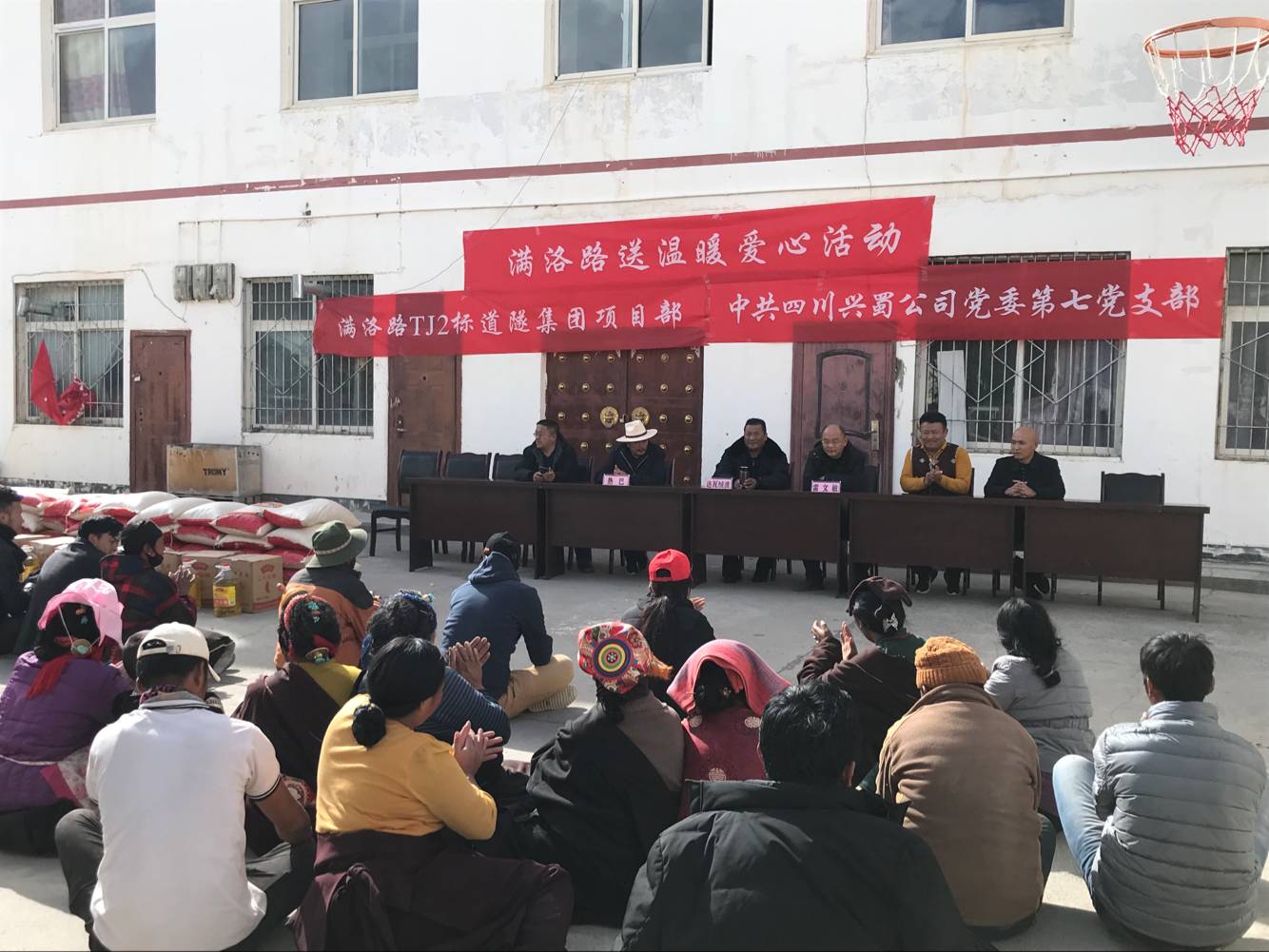 为努力回报社会,奉献爱心,2018年10月20日,兴蜀公司第七党支部带领G215线满洛路参建单位到项目所在地正科乡开展送温暖献爱心活动,为贫困户们送去了关爱和温暖,并感谢石渠县委、县乡政府及正科乡农牧民对满洛路施工建设的大力支持与配合。