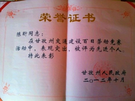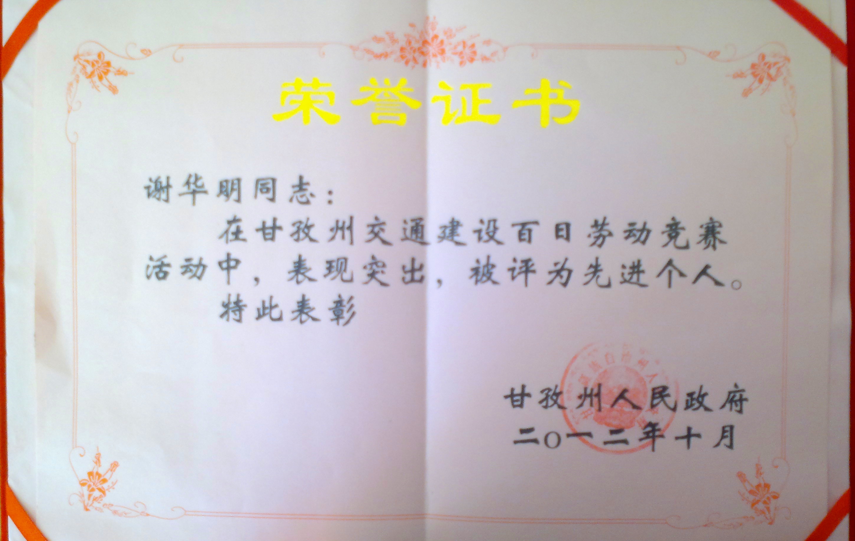日前,在甘孜州“交通建设百日劳动竞赛”活动中兴蜀公司创造佳绩,省道217线理亚路指挥部荣获“甘孜州交通建设百日劳动竞赛活动先进单位”荣誉称号,国道318线东海路指挥部陈昕、谢华明、向贵学三名同志荣获“甘孜州交通建设百日劳动竞赛活动先进个人” 荣誉称号。